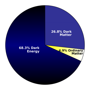 La energía oscura es aún más extraña. Consiste en una especie de energía asociada al propio espacio, que llena de manera uniforme todo el universo, incluso los espacios aparentemente vacíos. Aunque su densidad es minúscula (en el volumen de la Tierra sólo hay unos 7 mg. de energía oscura), el hecho de que se extienda por el universo todo hace que signifique el 68% de su contenido. La energía oscura es el ingrediente más abundante del universo, y el que marcará su destino.