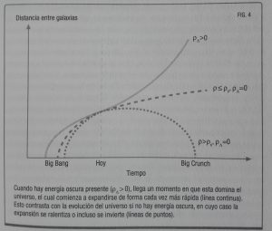 El descubrimiento de la energía oscura obliga a reconsiderar la cuestión de cómo será el ritmo de expansión del universo en el futuro. La energía domina el contenido del universo y marca su ritmo de expansión y lo hará cada vez más en el futuro, ya que su densidad permanece constante, mientras que la densidad de materia y radiación se va diluyendo a medida que el universo se expande.